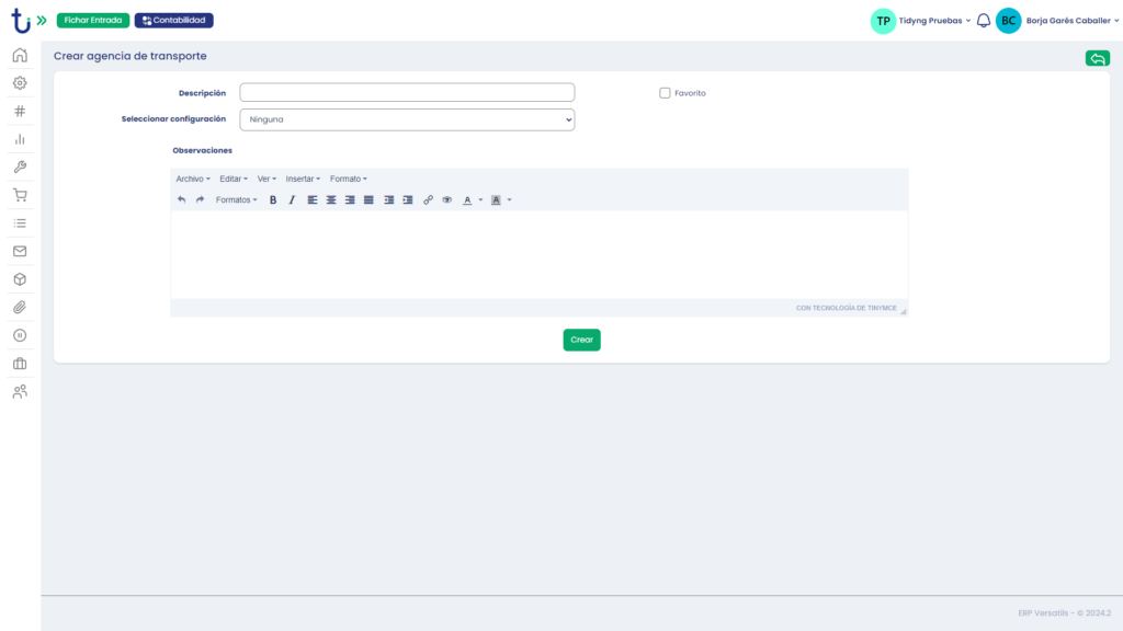 Se nos abrirá un formulario en el que especificaremos el nombre de la empresa y si queremos podremos agregarla a favoritos y añadir observaciones.