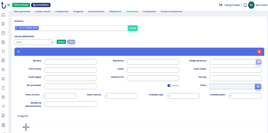 Una vez hecho, en la parte de abajo se nos creará un listado con los atributos creados, al pulsar encima de ellos se nos abrirá un formulario individual de cada una de las variaciones. Es en este formulario de datos en el que podremos dar de alta los códigos de barras de cada variación.