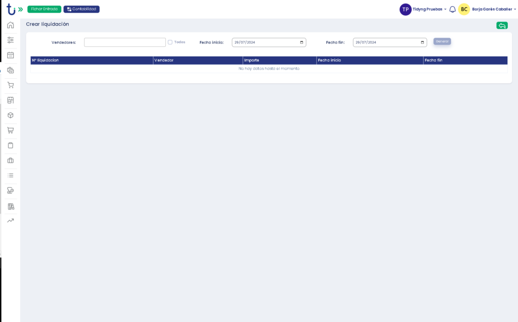 Cuando queramos saber la cantidad de dinero que cada Vendedor a generado en comisiones tendremos que hacer un «Liquidación de comisiones».