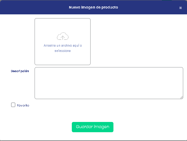 En este apartado podremos agregar las imágenes que queremos que tenga este producto. Al pulsar en «Nueva imagen» nos aparecerá una ventana en la que podremos agregar la imagen que necesitemos y añadirle una descripción.