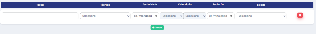 Aquí podrás visualizar todas las tareas existentes del proyecto o crear nuevas. Al añadir una nueva, verás la siguiente interfaz: