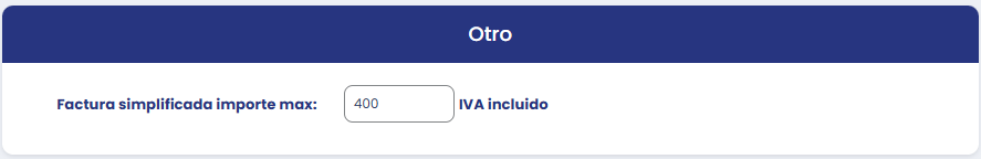 En Configuraciones > Datos generales > Contabilidad, tenemos un apartado llamado «otros», que permite cambiar la cantidad máxima de dinero que se puede usar para hacer una factura simplificada.