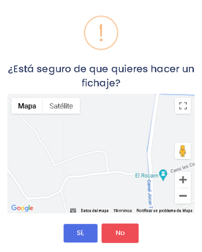 Ubicación: Al pulsar este botón podremos visualizar la ubicación en la que el empleado ha fichado su entrada o salida.