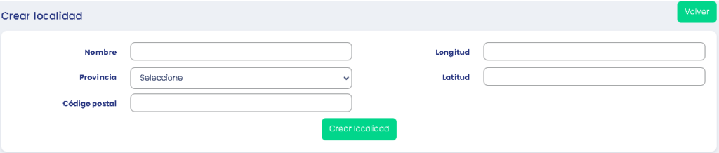 Se nos abrirá un formulario en el que pondremos un nombre a la localidad, seleccionaremos una provincia y agregaremos el Código Postal y la Altitud y la Latitud.