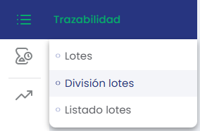 Para crear una nueva división de lotes nos dirigiremos al menú lateral izquierdo, entraremos en Trazabilidad>División de lotes. En este apartado pulsaremos en «+ nuevo».