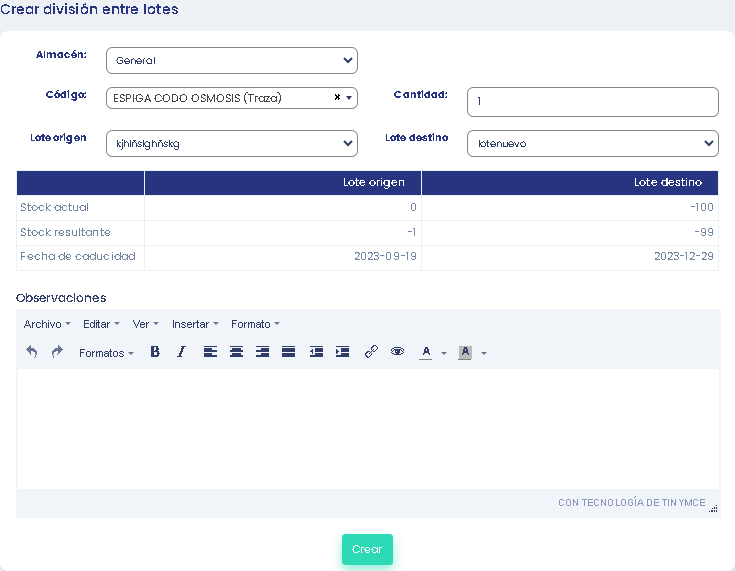 La división de lotes es una opción que nos permite subdividir lotes ya existentes. Esto nos ayuda a localizar los productos de forma más exacta, y nos permitirá visualizar los listados de forma más sencilla.