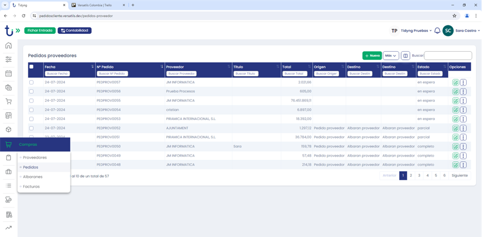 En primer lugar nos dirigiremos al apartado “Compras”, dentro de este accederemos a “Pedidos” y desplegaremos la opción “Más”.