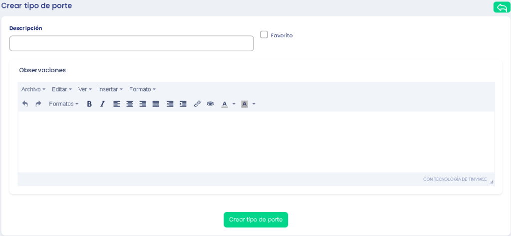 En este apartado escribiremos el nombre del porte y podemos agregarlo a favoritos y añadir observaciones.