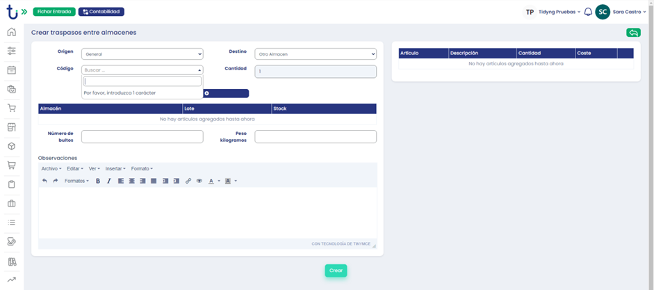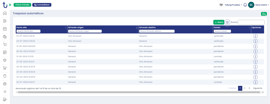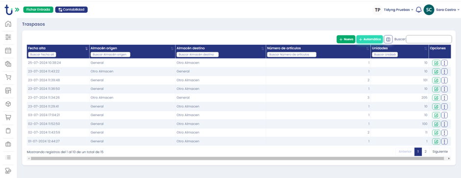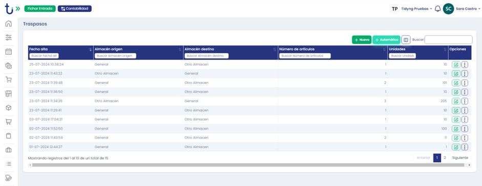 Para acceder a las parametrizaciones iremos a: Perfil de Usuario>Configuraciones>Almacén>»Traspasos automáticos».